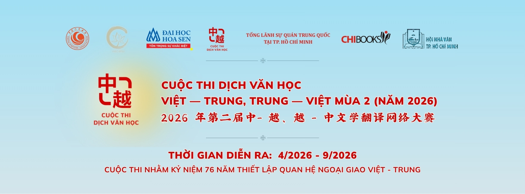 Cùng với BAN GIÁM KHẢO – CUỘC THI DỊCH VĂN HỌC VIỆT – TRUNG, TRUNG – VIỆT MÙA 2 (2026):