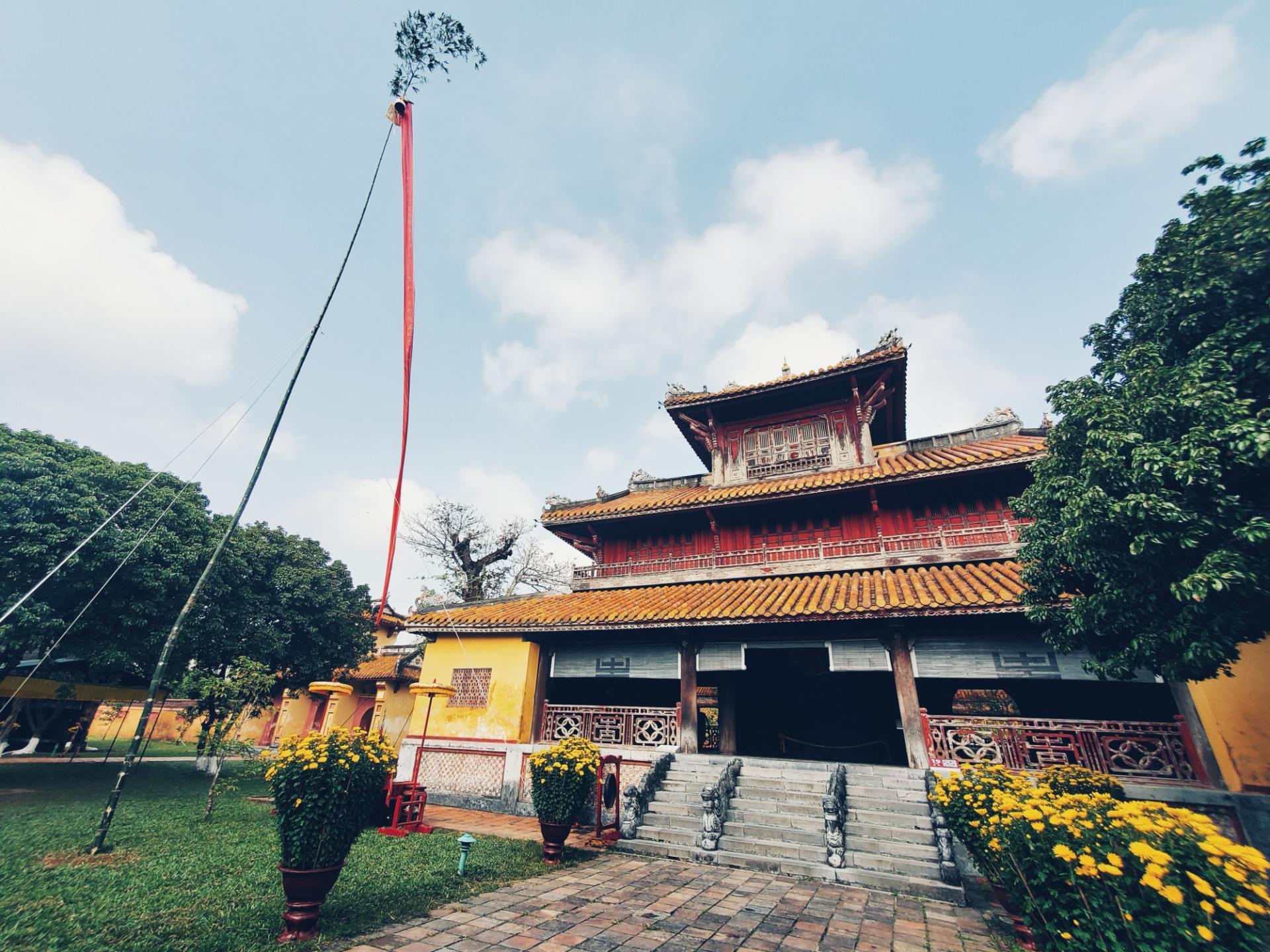 Cây nêu đón tết được dựng trong Đại Nôị Huế