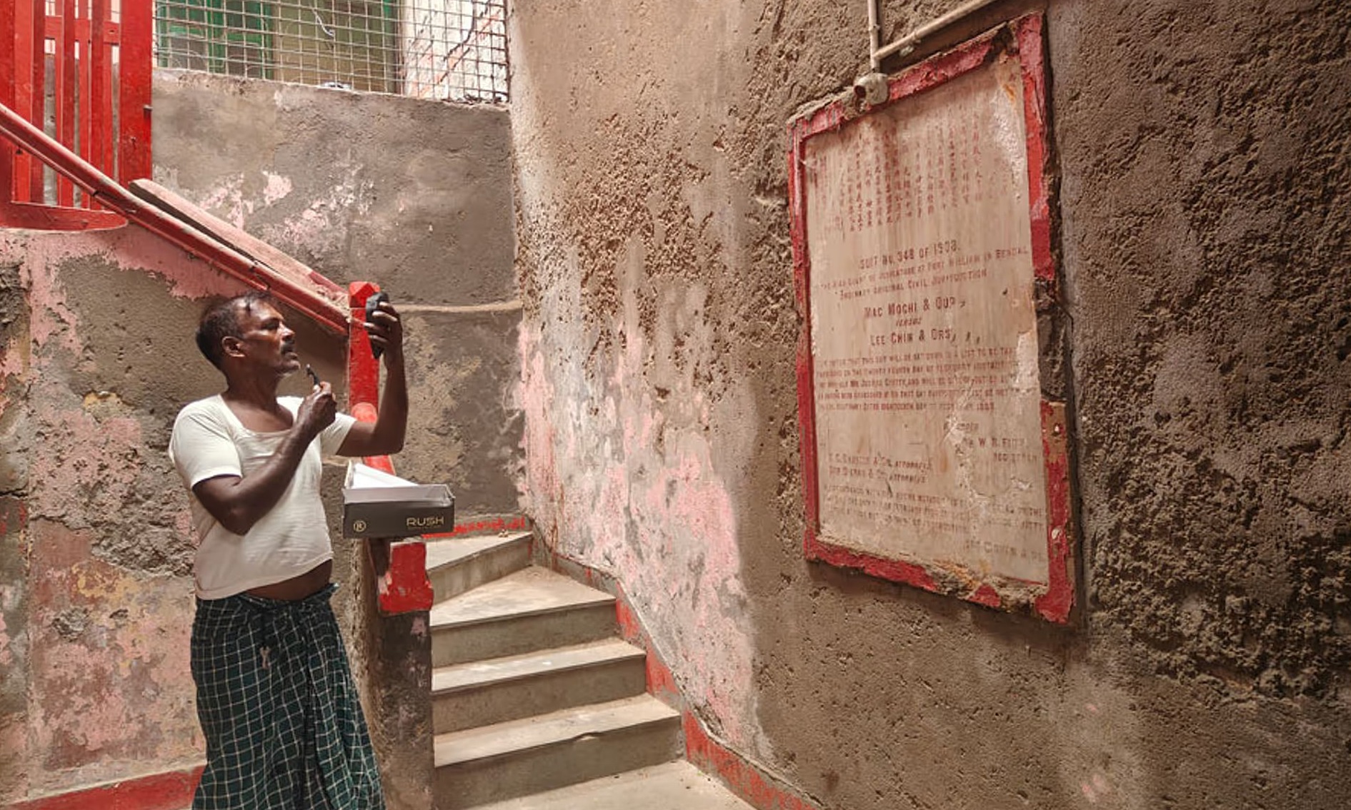 Theo ông Neogi, số lượng người Hoa ở Kolkata sẽ giảm còn khoảng 1.000 người trong 5-10 năm tới. Trong ảnh là một tòa nhà bỏ hoang ở Tangra, trên biển có ghi "Hội đồng sản xuất Tangra Ấn Độ". Ảnh: ST