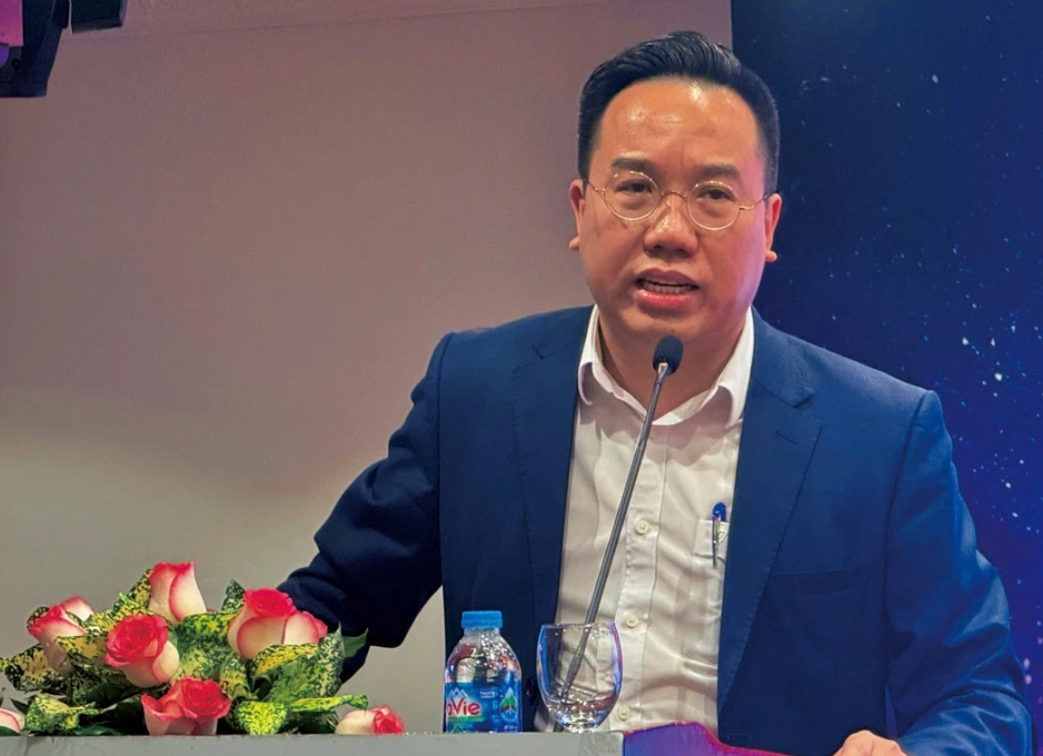 Chủ tịch Hội In TP.HCM Ngô Anh Tuấn chia sẻ tại hội nghị. Ảnh: P.K.