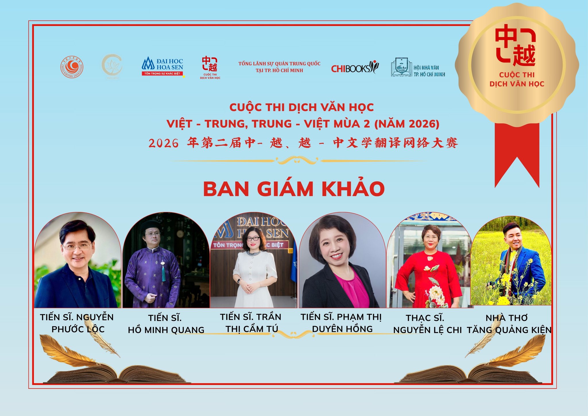Cùng với BAN GIÁM KHẢO – CUỘC THI DỊCH VĂN HỌC VIỆT – TRUNG, TRUNG – VIỆT MÙA 2 (2026):