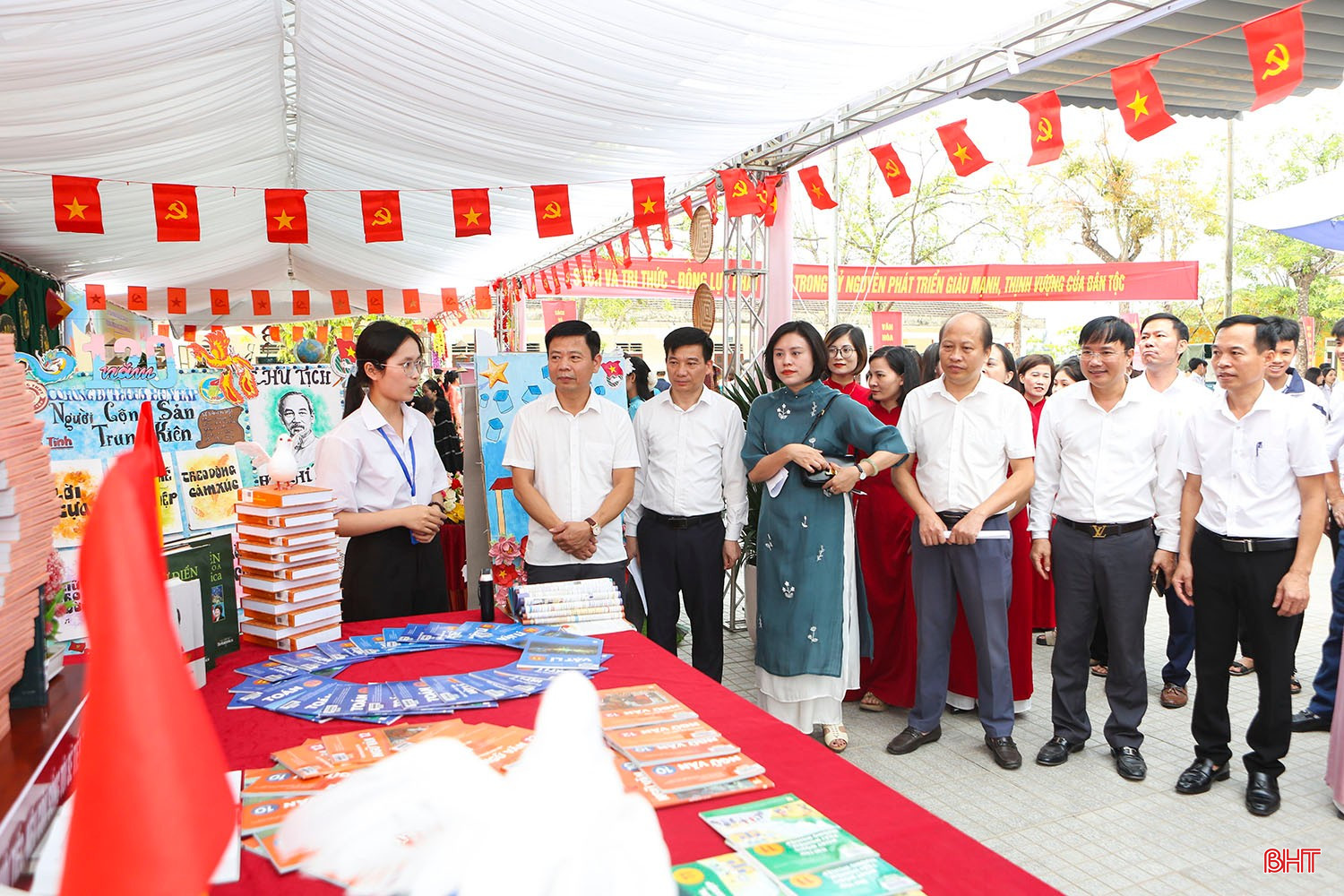 Giáo viên và học sinh Trường THPT Hà Huy Tập hào hứng với ngày hội đọc sách tại trường.