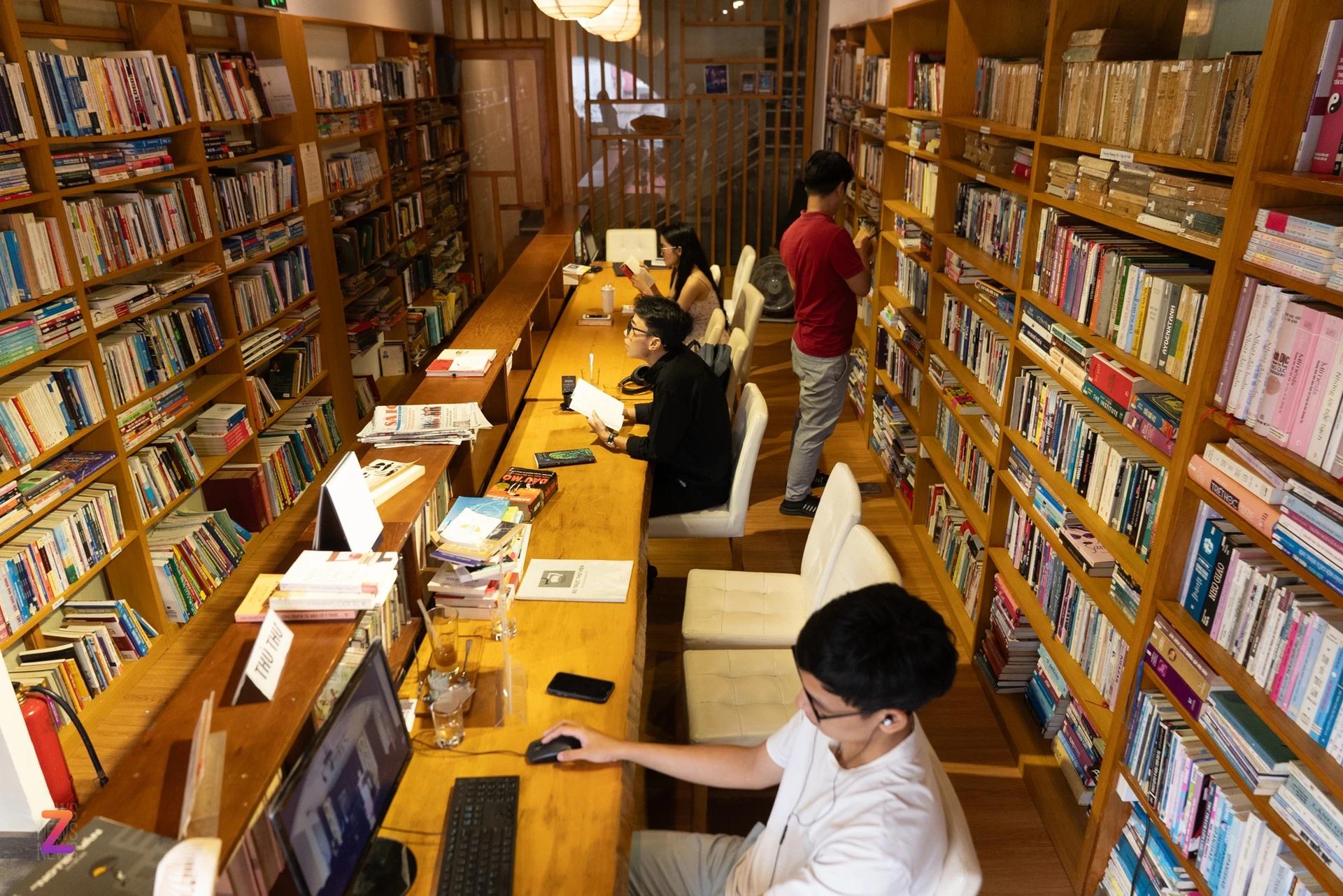 Không gian Thư viện Cà phê thứ bảy Trẻ là nơi những người yêu văn hóa tìm về đọc sách, nghe Kiều, đối thoại học thuật cùng các nhà giáo dục, trí thức hàng đầu.