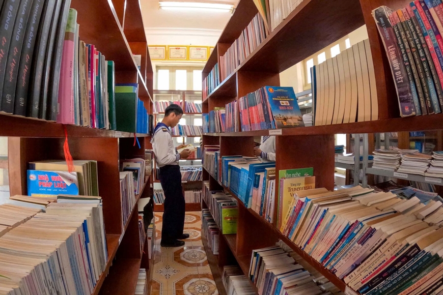 Sách là món ăn tinh thần không thể thiếu trong đời sống bộ đội. Ảnh: VÕ VIỆT |